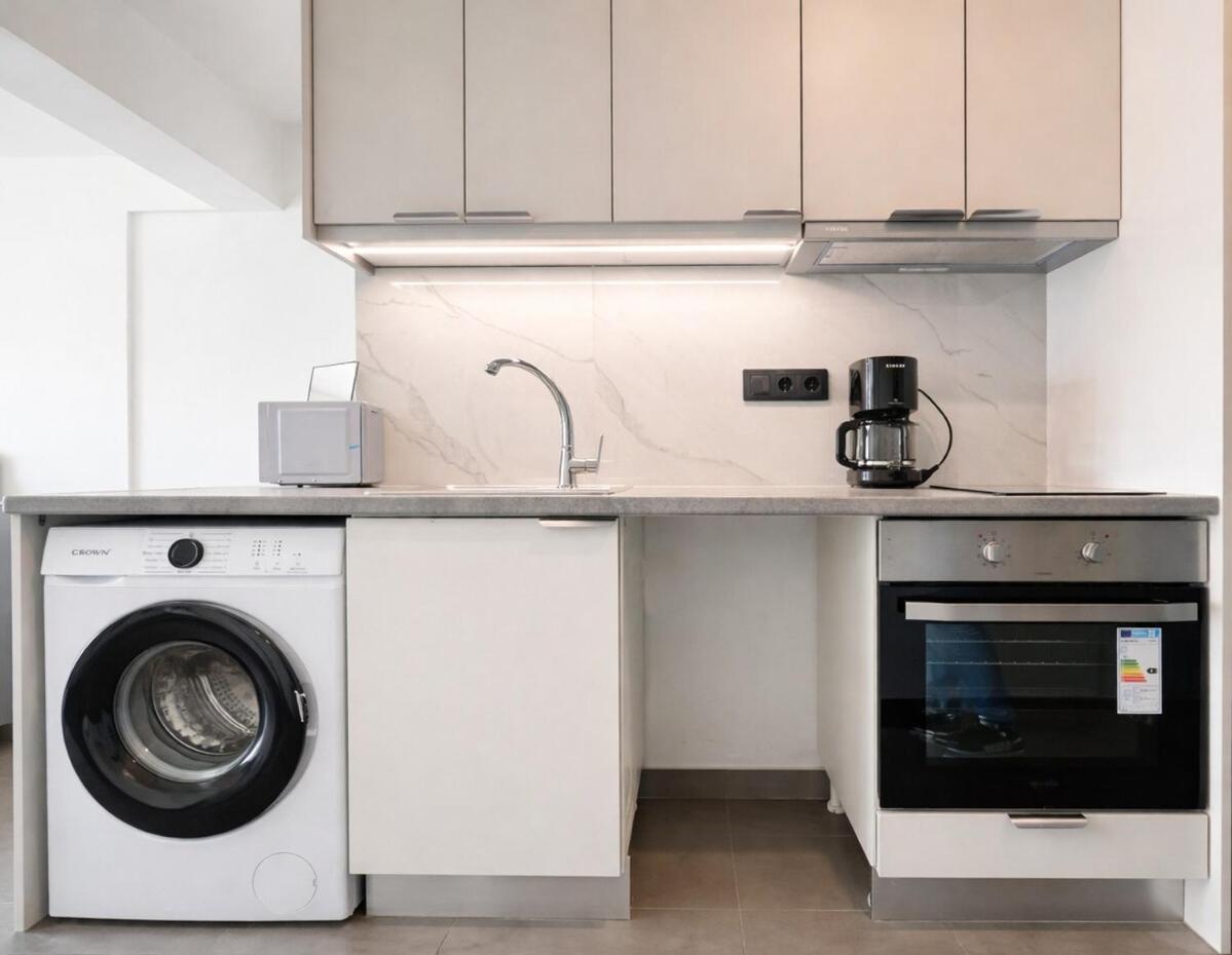 Studio. Meals can be prepared in the well-fitted kitchen, which features a stovetop, a refrigerator, kitchenware and an oven. The studio features air conditioning, a washing machine, a balcony with city views as well as a private bathroom boasting a bath or a shower. The unit has 1 bed.
